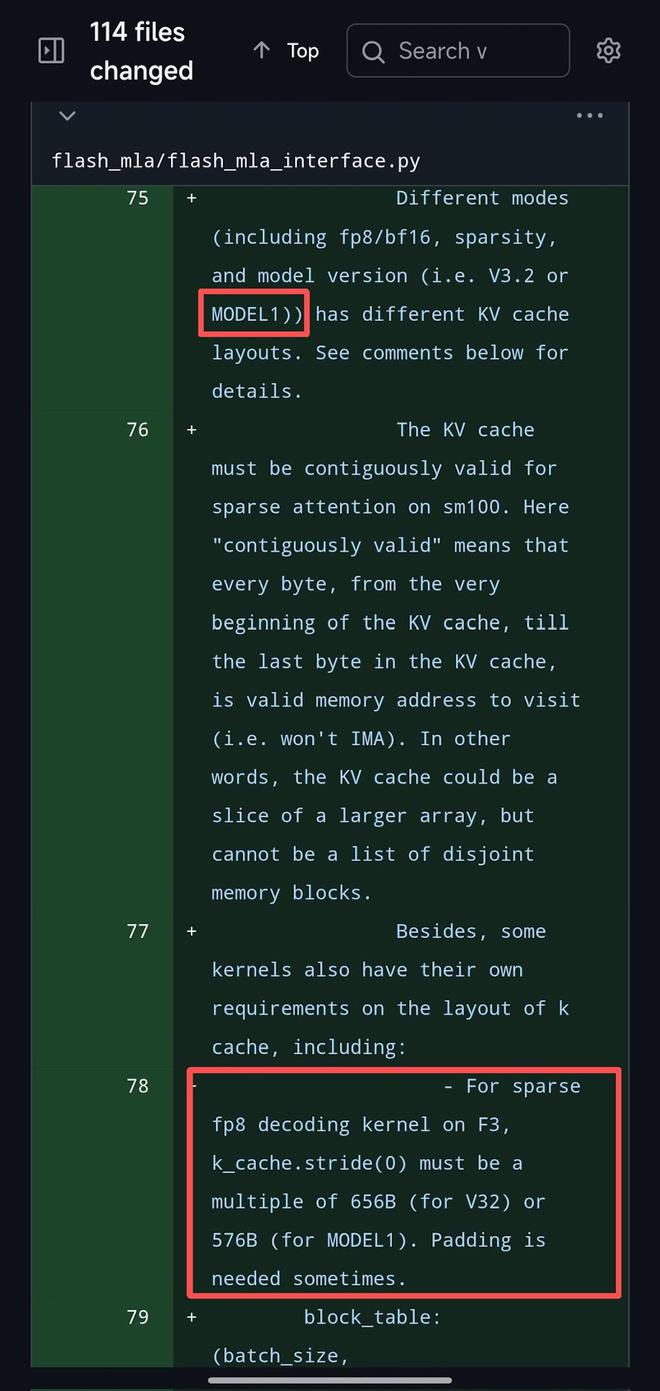 更值得注意的是,在代码中,有一条特别注释写道:对于F3架构(即SM90平台)下的MODEL1模型,其KV缓存的内存stride必须是576B的整数倍。