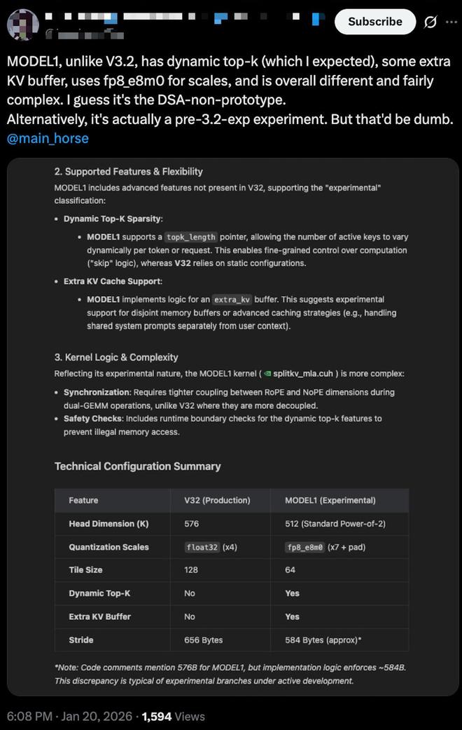 更关键的是,据海外开发者推测,MODEL1的背后将是一整套新的推理机制、算子结构与底层内存配置,会与DeepSeek现有V3.2模型呈现出完全不同的技术路径。
