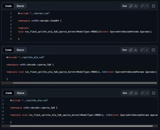 在相关代码文件中可以看到,MODEL1被用于核心解码函数的多个实例中,显式适配了头维度为64和128的场景,并专门部署在SM90和SM100架构上。