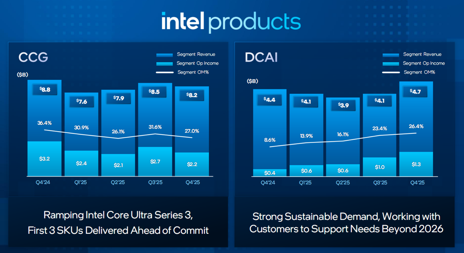 按照业务划分,CCG客户端事业部四季度收入82亿美元,同比下滑7%,全年收入322亿美元,同比下滑3%。