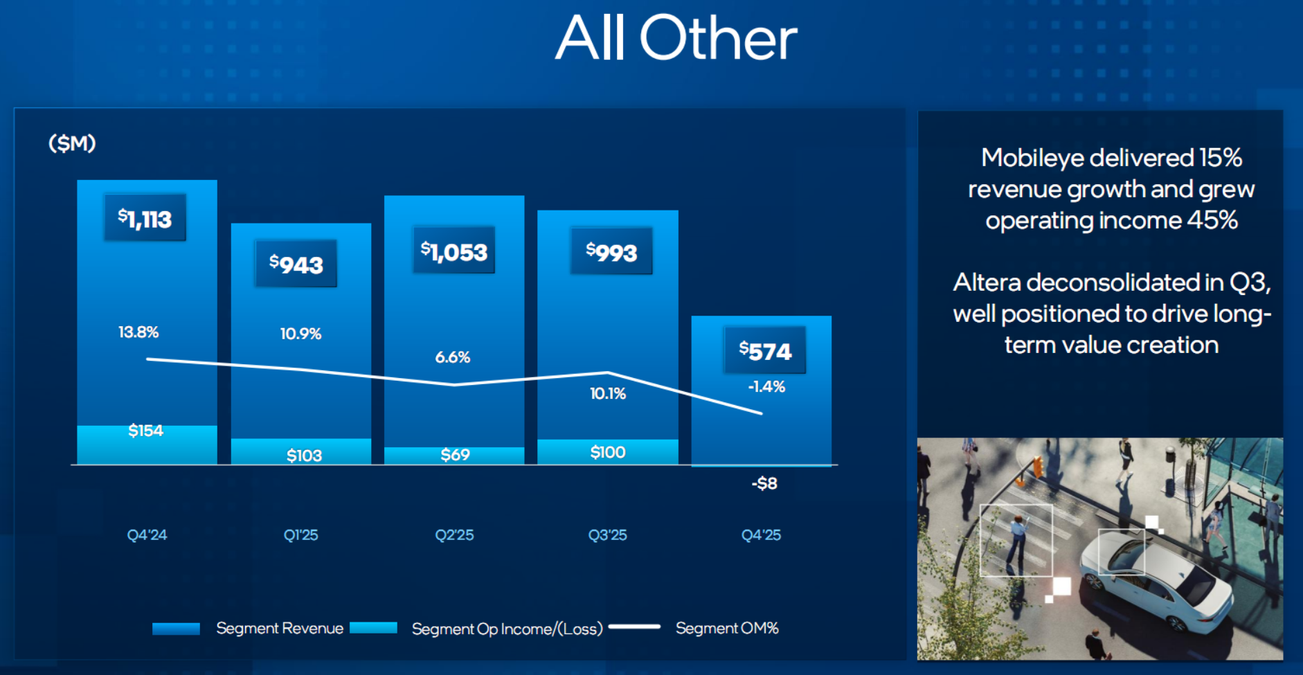 2025年,Intel采取了一系列举措以强化资产负债表,包括获得美国政府、NVIDIA、软银集团的资金,以及部分出售Altera、Mobileye股权,总计获得了97亿美元的营业现金。
