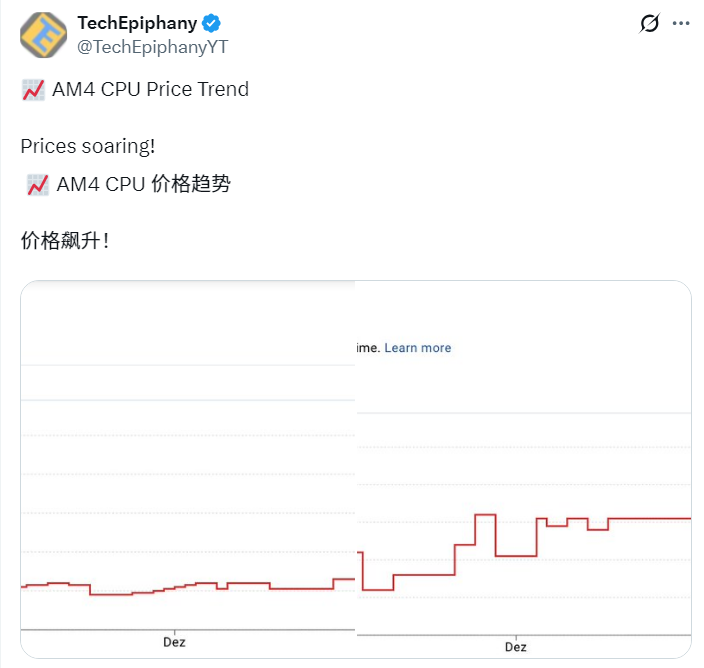 受全球DRAM供应短缺影响,DDR5内存价格近期一路狂飙,面对高昂的装机成本,大量消费者开始转向支持旧款DDR4内存的平台。这一趋势直接导致了AMD Zen 3架构处理器在市场上的需求激增,价格随之出现剧烈反弹。