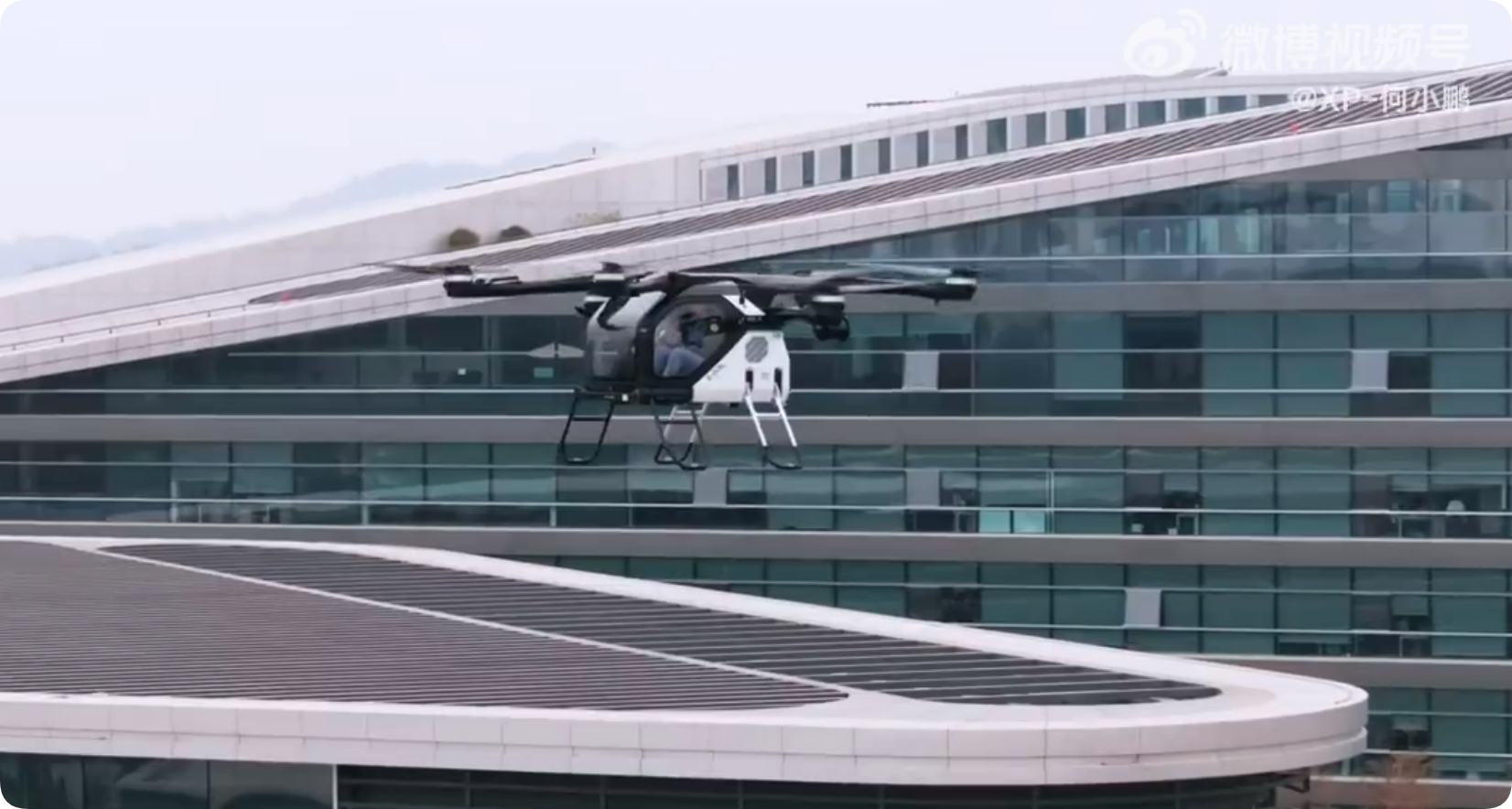 何小鹏坐飞行汽车降落年会现场 高颜值美女司机全程护航