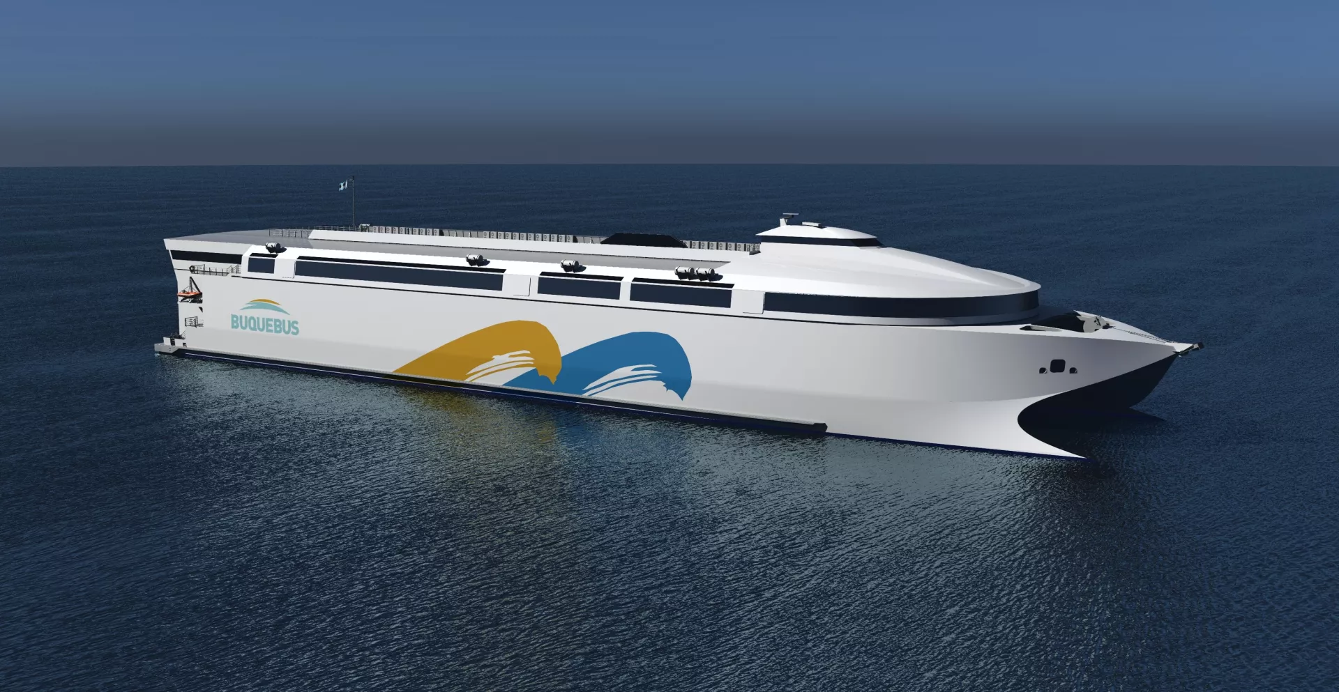 096号船体由塔斯马尼亚造船企业Incat Tasmania开发和建造。最初,Incat公布方案时,这艘130米级高速渡轮被设计为使用液化天然气(LNG),将交付给南美运营商Buquebus。但在项目推进过程中,燃料价格波动、电池成本下降以及充电能力大幅提升等多重因素叠加,促使Incat与Buquebus在2023年共同决定,将该船改造为纯电动方案,实现全面电池化。