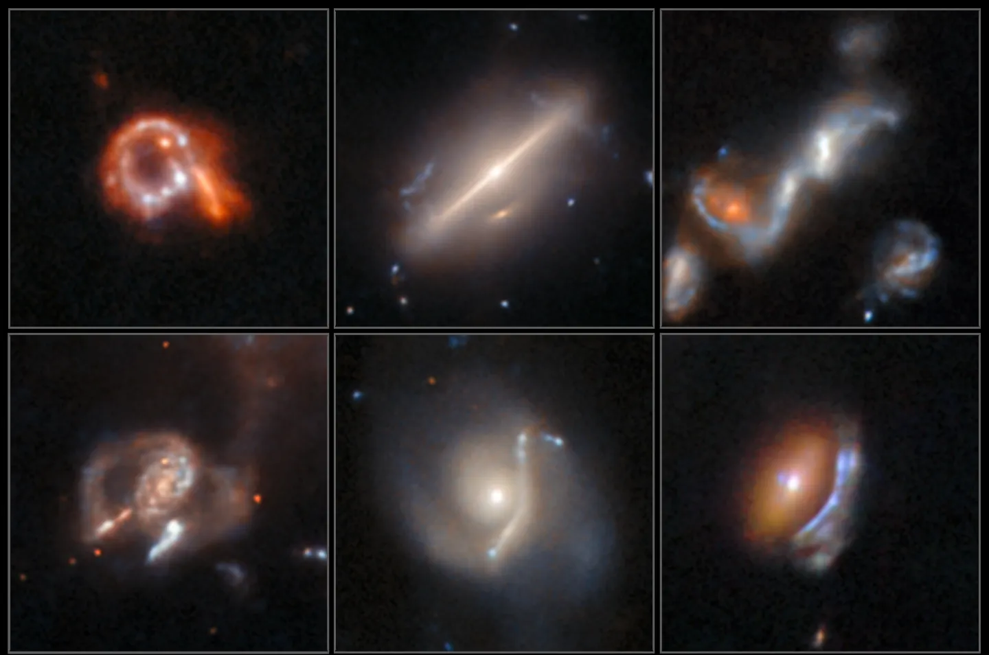 这是哈勃遗产档案首次被系统性地用于“异常搜寻”,而非只为特定目标或特定任务服务。 研究成果发表于期刊《天文学与天体物理学》(Astronomy & Astrophysics),共识别出近1400个“异常天体”,其中大部分与星系间的相互作用或并合有关。 在这些样本中,研究人员还发现了多种类型的特殊结构:包括由巨大质量天体弯曲光线形成的引力透镜(其在图像中通常表现为弧状或环状光晕)、带有气体“触手”的“水母星系”、以及拥有庞大恒星团块的星系等。