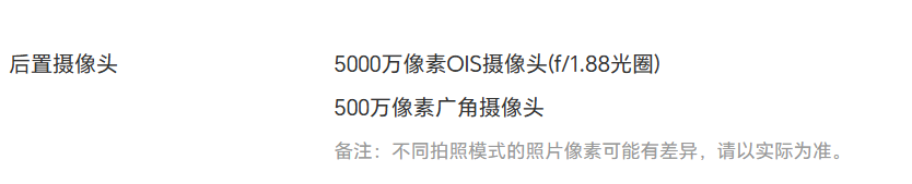 通过官网的规格参数,也再次确认了MKBHD的说法,该机配备了一颗5000万像素的主摄像头和一颗 500万像素的超广角摄像头。