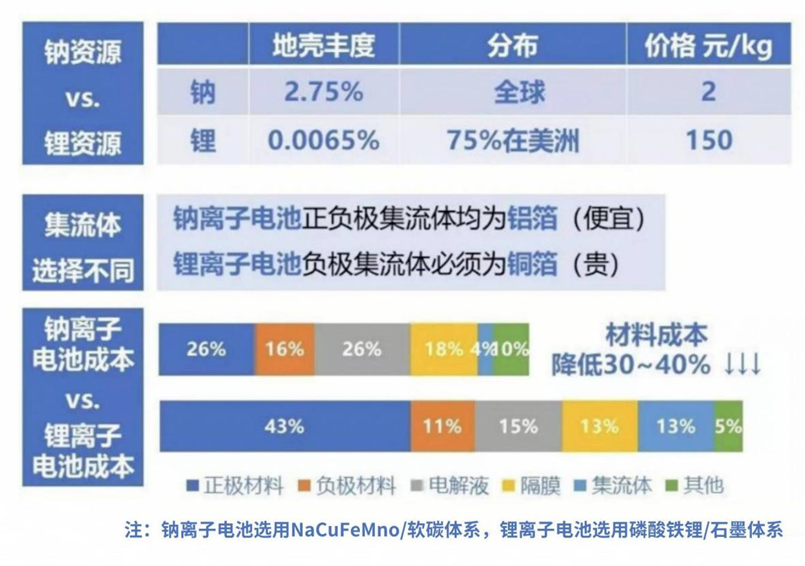 钠离子电池成本优势