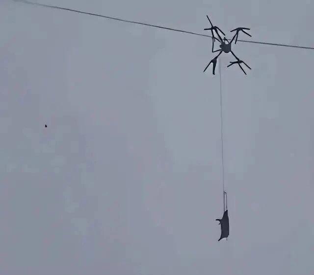无人机操作不当,挂在半空中不算什么新鲜事,但无人机下吊着一头“活猪 ”再一起挂在电线上,绝对稀奇!2026年1月24日,临近年关,四川巴中一名男子准备杀10几头年猪。由于家中离屠宰点比较远,运猪的路又不好走,于是突发奇想,他决定用无人机运猪下山。