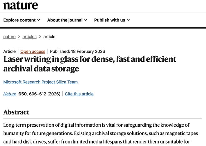 微软神奇玻璃登上Nature 能将200万本书存储1万年
