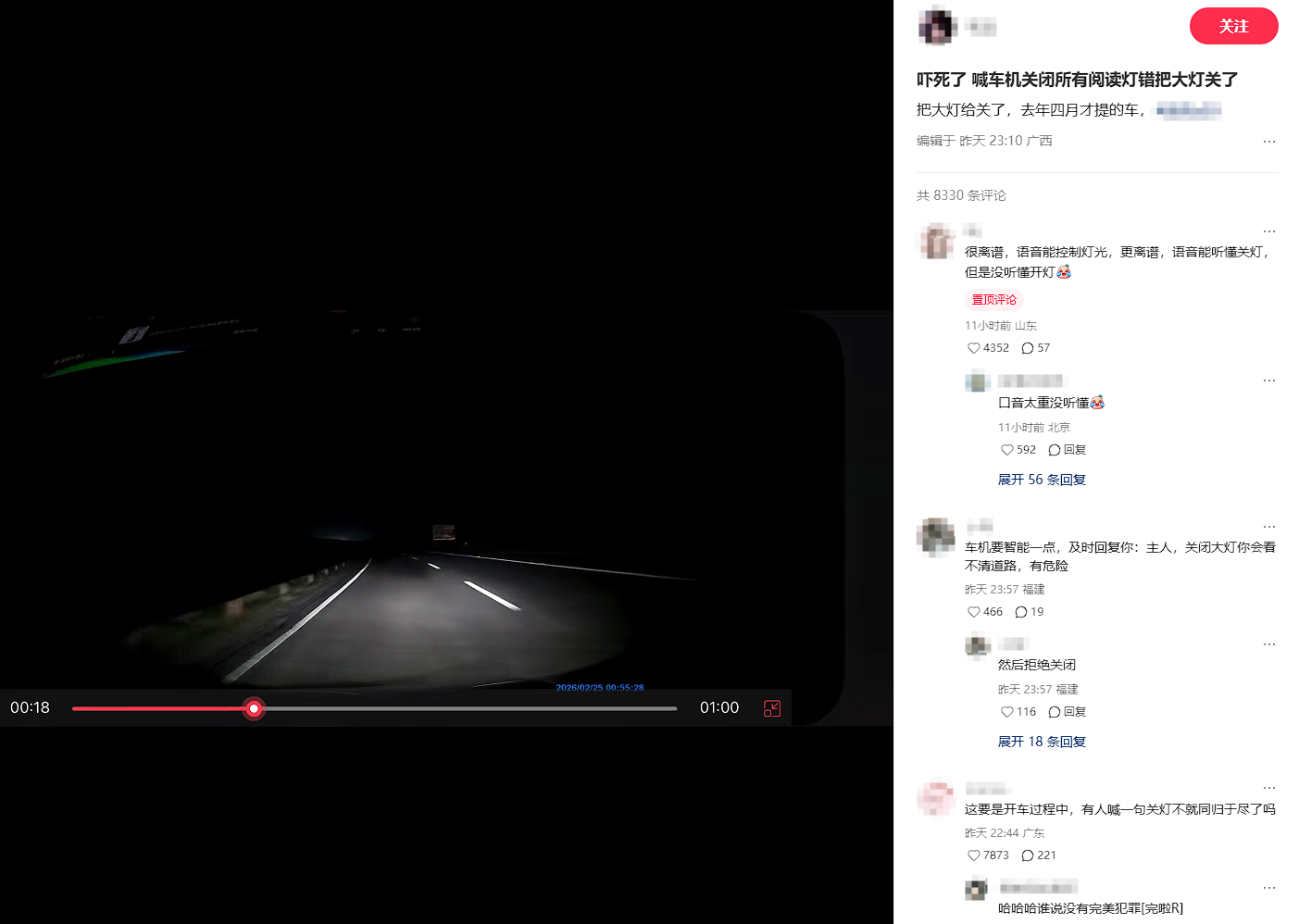 有意思的是,不少其他品牌的车主看到后产生担忧,于是进行了测试,结果在D档时车子拒绝执行操作,并告诫“安全起见,切到P档才能用语音关闭所有灯光”,这更加印证了此次事故中车辆确实存在安全BUG。