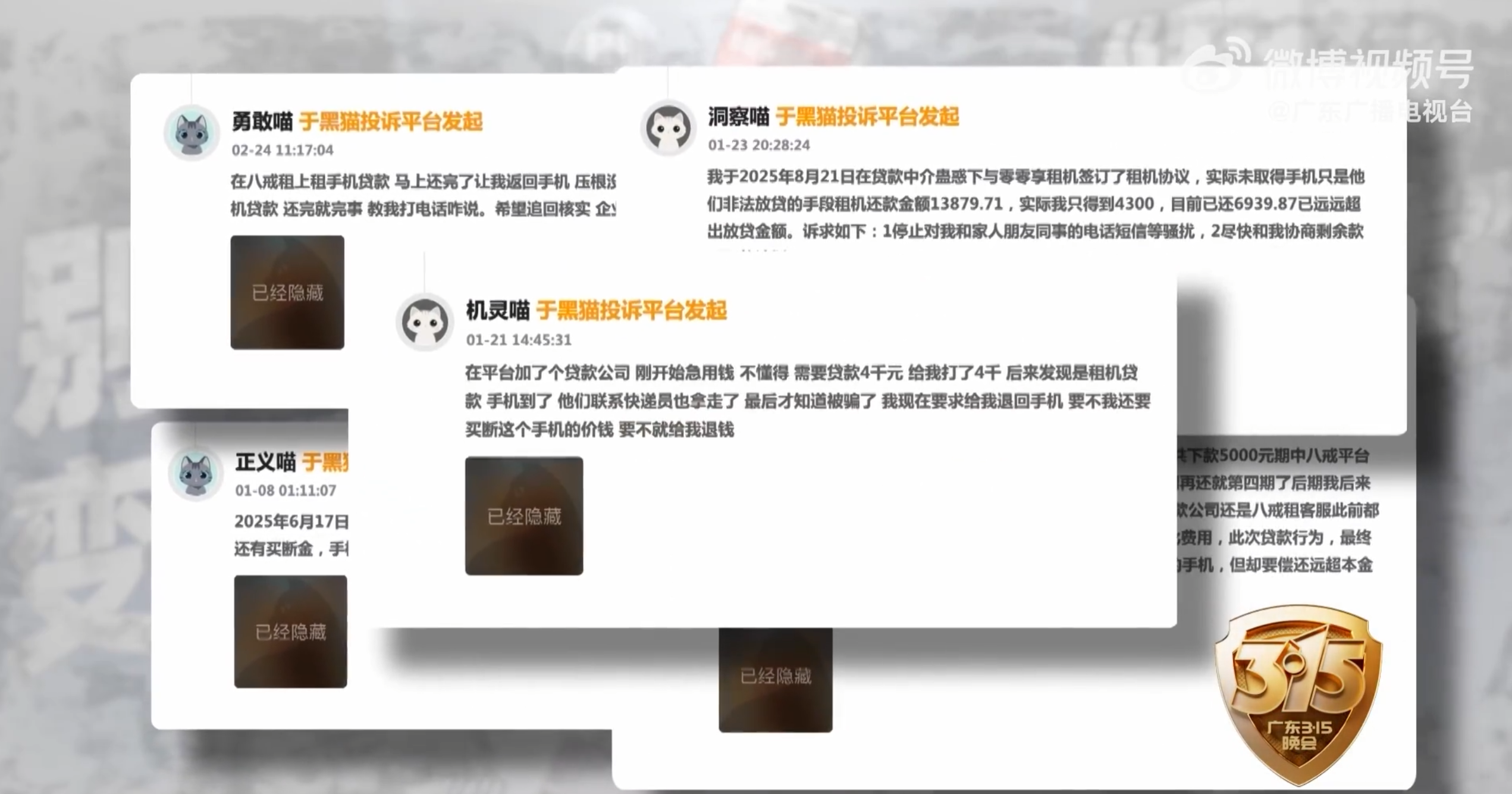 广东315曝光租机贷吸血套路:有人租40部手机背上近50万高利贷