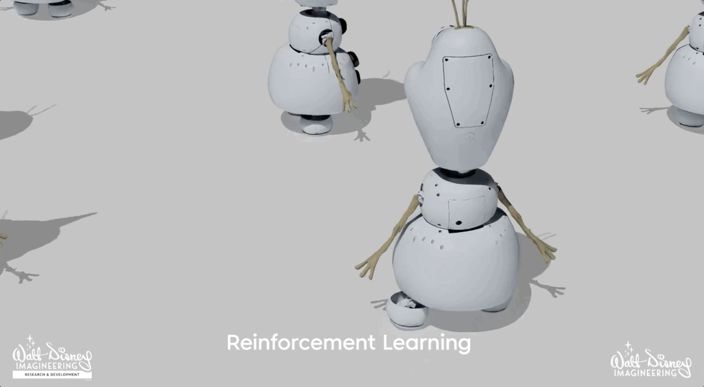 在技术路线方面,“雪宝”机器人并不是通过工程师逐帧手工编程每一个动作,而是大量依赖强化学习和仿真环境来训练其行走与姿态控制,这一方法此前已在迪士尼的BDX机器人上试验过。 工程师将电影中的动作数据输入仿真系统,通过强化学习让机器人“学会”如何像雪宝那样迈步、转身与摆动身体,从而显著缩短了开发时间。