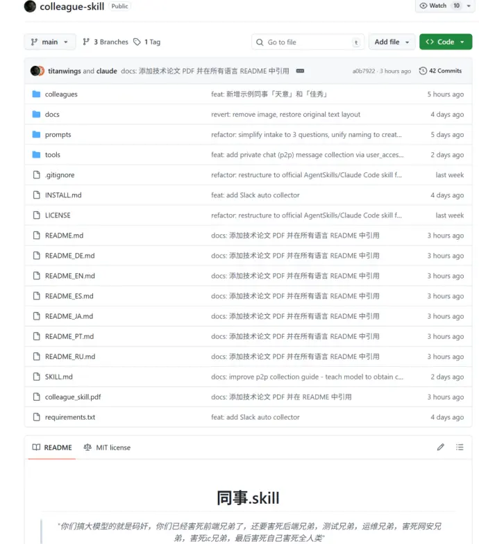 同事.Skill本质上是一个遵循AgentSkills标准的提示词+爬虫工程项目,根本不是什么AI训练项目,更不是赛博永生。