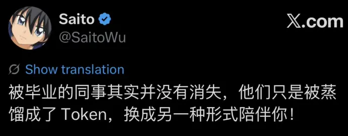 这件事的起源其实很简单。X平台用户发了一条推文:“被毕业的同事其实并没有消失,他们只是被蒸馏成了 Token,换成另一种形式陪伴你!”以此调侃步入agent时代后,所有企业都在以token的消耗量判断模型的价值。