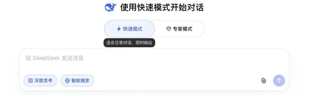 就在刚刚,DeepSeek 网页端迎来大更新。没有发布会,没有 blog,甚至连一条官方推文都没有。DeepSeek 网页端的输入框上方多了两个图标——一个闪电,一个钻石,分别对应“快速模式”和“专家模式”。