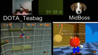 当时一位叫 DOTA_Teabag 的玩家正在家里直播《超级马里奥 64》,跟另一位叫 MidBoss 的玩家竞速。
