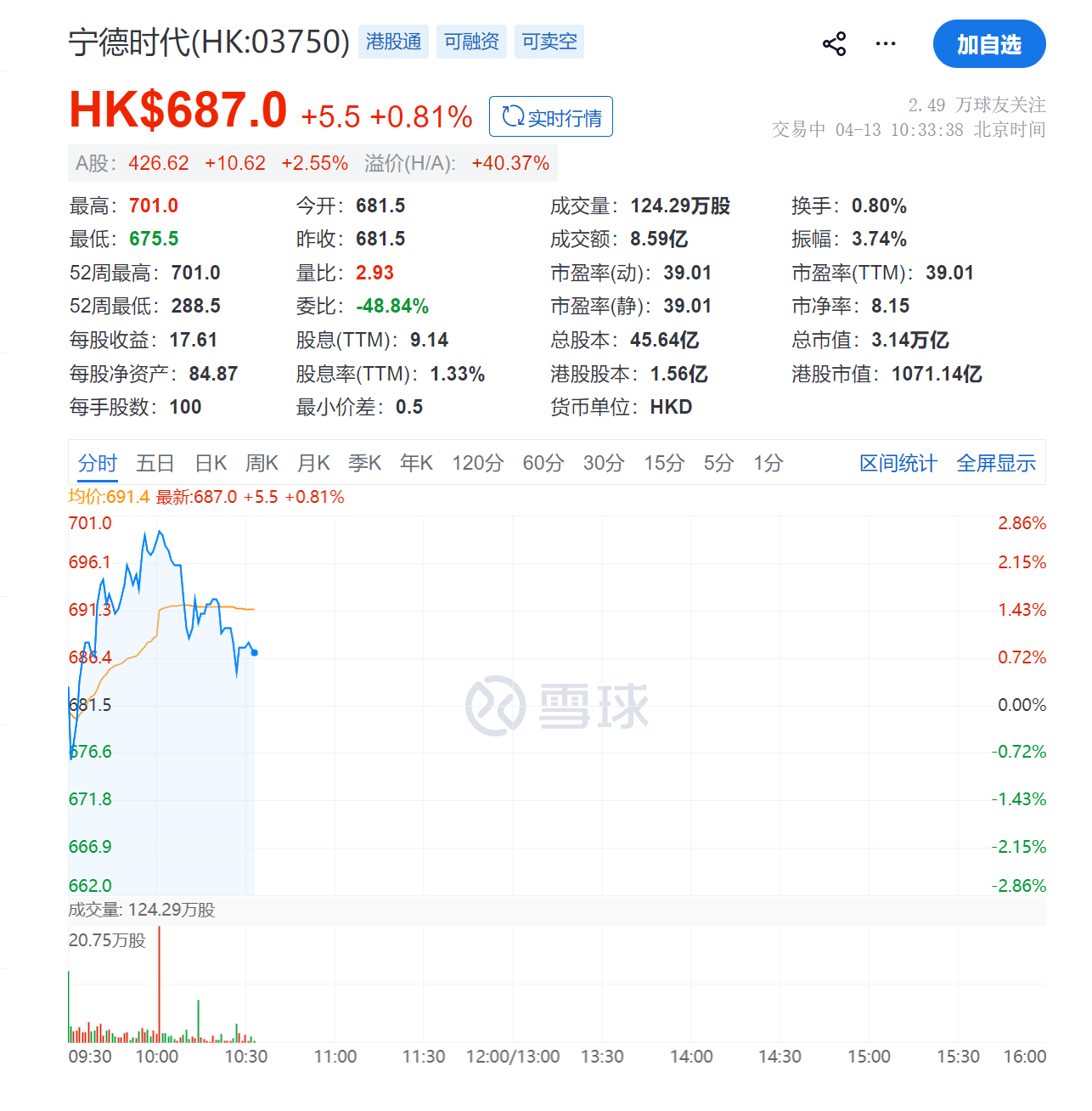 宁德时代股价创历史新高 A+H股市值突破2万亿