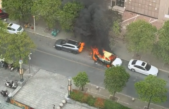 一电车自燃引燃邻车 司机及时撤离 爱车尾部仍遭焚毁