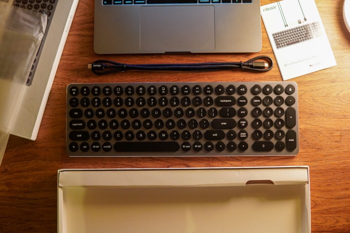 银色金属 + 圆形黑色键帽的设计,以及钻石切割的边缘,与 MacBook 和 iPad 很是搭调。为了保持使用时的稳定,键盘底部还配有一些防滑脚垫。