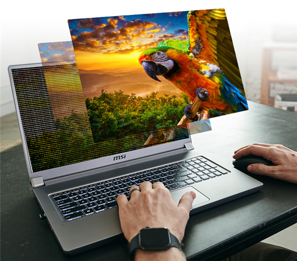 这块17.3英寸的4K超高清屏幕亮度高达1200尼特,同时覆盖100% DCI-P3色域,符合HDR1000高标准,色差Delta E<2,支持微星True Color色彩调教技术、CalMAN认证,可以带来电影级的色彩表现,面对传统IPS、OLED显示屏直接秒杀。