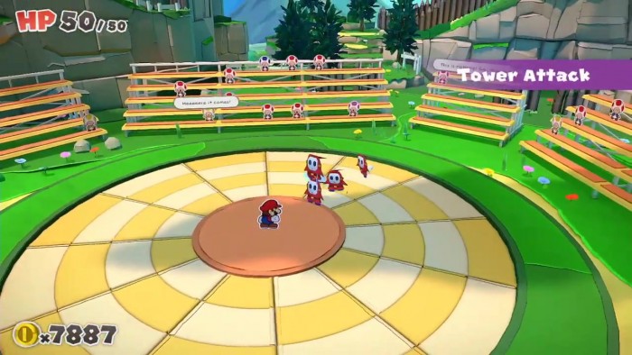 在“拼板×动作”的新系统中和袭击马里奥的折纸兵战斗。敌人会从360度席卷而来,确实转动、排列、一鼓作气打倒敌人吧!