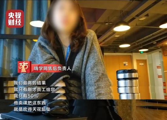 嗨学网售后负责人:我承认是我们销售给您做了这个违规承诺,确实也很抱歉。我们最高的结果就只有50%,100%绝对不可能。我懂他给你承诺了很多东西,他承诺的套路,我处理上千起投诉,我肯定知道的。他卖课就是吹得天花乱坠。