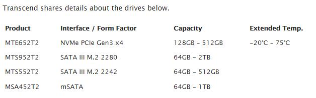 然后是 MTS952T2 和 MTS552T2 这两款 mSATA SSD,其采用了紧凑的 M.2 2280 和 2242 外形,最高读速 560 MB/s 。