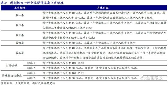 如图,科创板为申报企业提供了五套上市标准,寒武纪选择了第二套,这是其中唯一对公司研发投入做出规定的标准。第二套标准要求:预计公司市值不低于人民币15亿元,最近一年营业收入不低于人民币2亿元,且最近三年研发投入合计占最近三年营业收入的比例不低于15%。