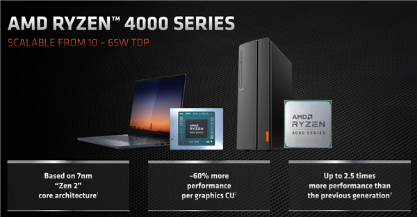 AMD锐龙4000G、速龙3000G系列处理器预计2020年第三季度上市,包括联想、惠普在内的OEM合作伙伴都会推出相应的整机产品。