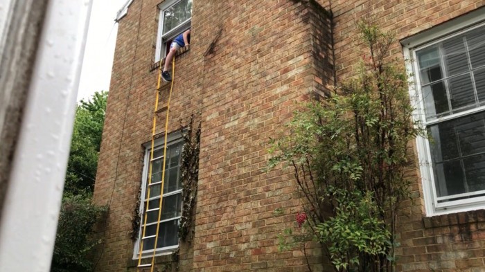 相比之下,一旦Rescue Ready Retrofit安装完毕,梯子只需要用一块模制塑料代替掉下来的木饰条就可以了。一旦发生火灾,就可以迅速打开外边的装饰塑料盖然后将救生梯抛出窗外。