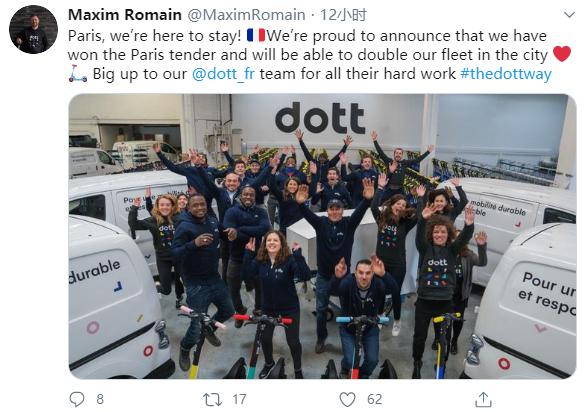 共有16家滑板车共享公司对该市的招标书做出了回应。Lime是唯一一家在美国赢得合同的公司,它表示 "很高兴能成为获胜者之一"。总部位于柏林的Tier公司以赢得 "全球最大的电动滑板车招标 "而欢呼。而总部位于阿姆斯特丹的Dott公司则在Twitter上发布了其团队的庆祝照片。