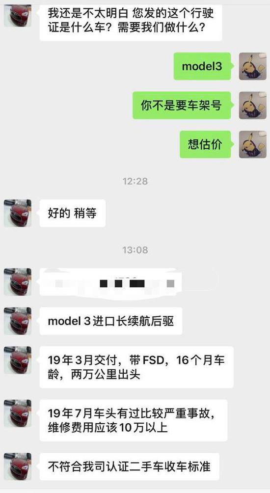 2020年初,Z先生离开了深圳并计划长期在外生活,所以将这辆Model 3出售,最终一位相识的朋友J先生直接找到Z先生表达希望购买这辆车。J先生将车架号提供给特斯拉官方二手车认证工作人员,希望对车辆进行估价,没想到工作人员给予的回复是“19年7月车头有过比较严重事故,维修费用应该10万以上,不符合我司认证二手车收车标准。”