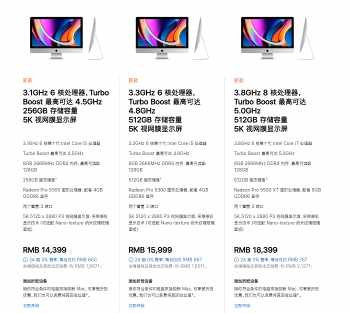 2020秋季款iMac现已开始接受订购,价格方面,21.5寸iMac最低价格1099美元起跳,低配版i5 iMac 5K为1799美元起。