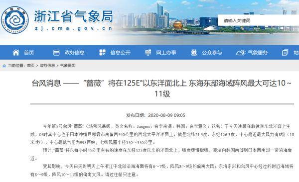 浙江省防指:台风“蔷薇”将带来明显风浪 渔船16时前回港或避风