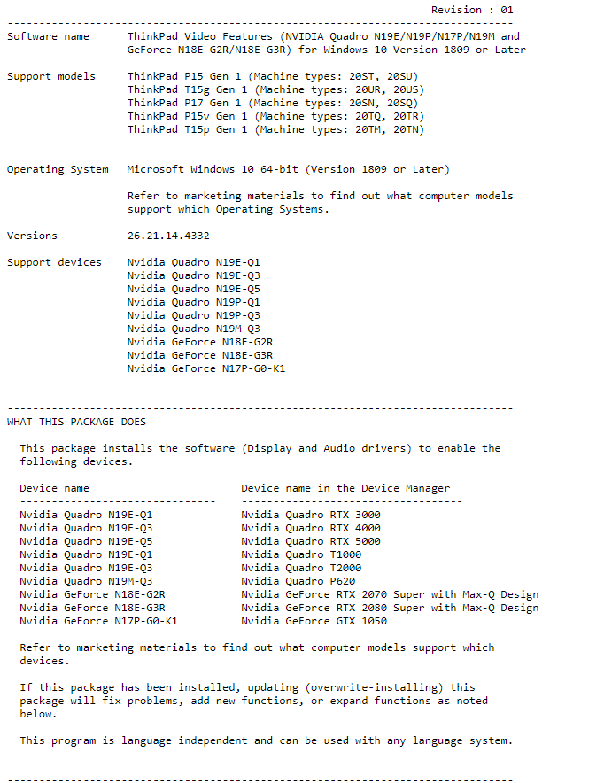 为什么我们认为这会是一款专注于游戏的机型呢?因为联想的支持网站已经列出了ThinkPad T15g的驱动。在ThinkPad P15、P17、P15v、T15p和T15g共享的GPU驱动中,列出了Nvidia GeForce RTX 2070 Max-Q和Nvidia GeForce RTX 2080 Max-Q。由于列出的其他ThinkPad笔记本都不具备这些GPU,所以必须在ThinkPad T15g中使用。