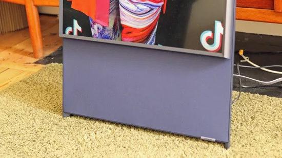 电视屏幕配备了相当重的边框,并安装在滑板形的支架上,显示屏下方装有织物覆盖的扬声器。整个套件也以颇具吸引力的午夜蓝为主色调,这样的外观设计,醒目而特别,放在客厅或家里很难不引起关注。
