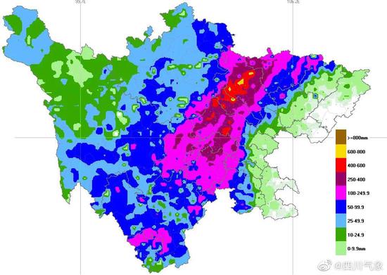 据四川省气象台公布14日20时—18日08时雨情:从14日夜间开始,四川省西部开始的持续暴雨天气,强降雨落区主要集中在盆地西部和川西高原及攀西地区。在此期间累计降雨量,全省50.0—99.9毫米1001站,100.0—249.9毫米1198站,250.0—399.9毫米637站,400—600毫米166站;累计最大雨量出现在德阳旌阳区黄许镇865.0毫米,最大小时雨强在德阳旌阳区黄许镇118.4毫米。绵竹(16日302.6毫米)、龙泉驿(16日264.3毫米)2站创有气象记录以来日雨量极值,北川(16日266.6毫米)、江油(16日242.3毫米)2站为有气象记录以来第3高值。