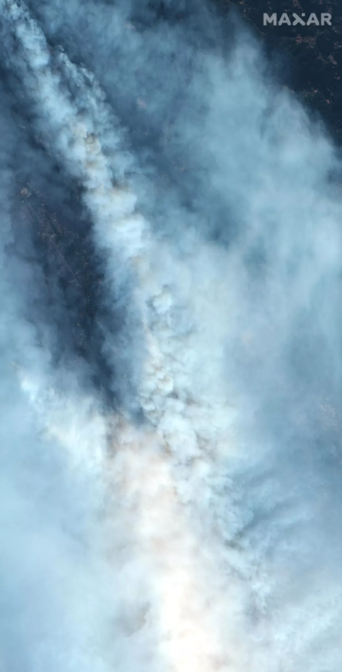 Maxar的WorldView-3卫星配备了短波红外传感器,可以穿透烟雾,帮用户探测到活跃的火灾、热点,并准确绘制和测量燃烧区域,包括LNU大规模闪电山火、CZU大规模闪电山火、SCU大规模闪电山火等。