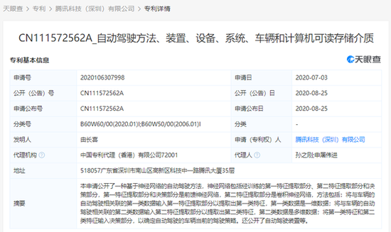 8月28日下午消息,天眼查App显示,近日,腾讯科技(深圳)有限公司新增多项专利。包括“自动驾驶方法、装置、设备、系统、车辆和计算机可读存储介质”、“车辆碰撞的预警方法及装置”、“车辆驾驶风险应对方法、装置”、“车辆通信方法、装置、计算机可读介质及电子设备”等。