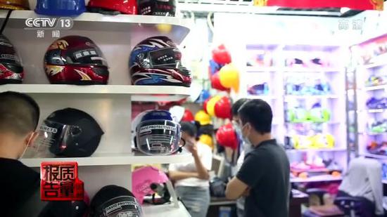 电动车头盔销售人员:原先都二十多块钱,涨到四五十(块钱)了,还有更贵的。