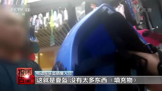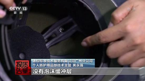 通标标准技术服务有限公司广州分公司个人防护用品部技术主管 黄永强:我们看到大部分声称是电动自行车乘员头盔的产品,虽然其外观跟自行车或者摩托车头盔都挺像的,但是其内部却是空的,没有泡沫缓冲层。这样使用者在骑行时如果不慎摔落,在其头部与地面撞击的时刻,头盔不能起到吸收能量的作用,使用者可能因此受到严重的脑部损伤,更甚者甚至可能会导致死亡的。