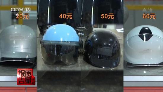 调查中记者发现,相对于比较成熟的摩托车头盔产品,用于电动自行车的头盔名称并不统一。在经销场所,有的叫“电动车头盔”,有的是叫“助力车防护帽”,还有的叫“电动车安全帽”。价格也比摩托车头盔低很多,这些头盔大都在30至50块钱不等,少量产品价格在100块钱左右。记者发现,在不少电动自行车销售店,售卖的头盔产品普遍更加轻、薄,结构上简单,只有一层壳体和一层塑料内衬。销售人员声称这种头盔很安全,甚至可以用于摩托车骑行。