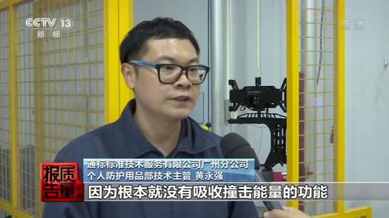 通标标准技术服务有限公司广州分公司个人防护用品部技术主管 黄永强:主要不符合的项目有头盔佩戴装置强度性能、头盔吸收碰撞能量性能以及头盔耐穿透性能,另外在佩戴装置、头盔护目镜等项目也出现了不符合项。