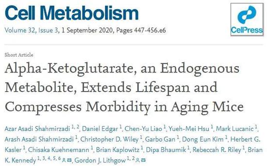 近日,美国巴克老龄化研究所(The Buck Institute for Research on Aging)和新加坡国立大学(National University of Singapore)的科学家合作,在权威学术期刊《细胞-代谢》Cell Metabolism上发表了一篇有关抗衰老的研究论文,引起了很多关注。研究人员通过双盲实验证明,把一种名为α-酮戊二酸(AKG)的天然代谢产物添加到日常饮食中后,成功地让中年小鼠延缓了衰老。这项研究的共同通讯作者之一Gordon Lithgow教授说,这一研究结果令人惊讶和备受鼓舞。