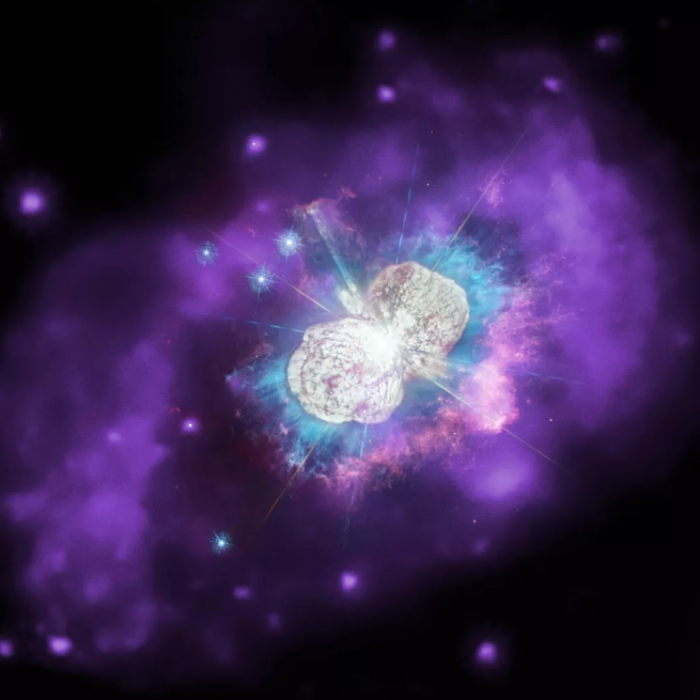 NASA将海山二(Eta Carinae)星系描述为 “一个包含两颗大质量恒星的不稳定系统,它们紧密地围绕着对方运行”。