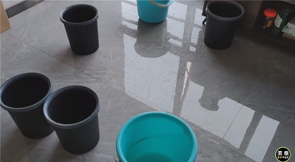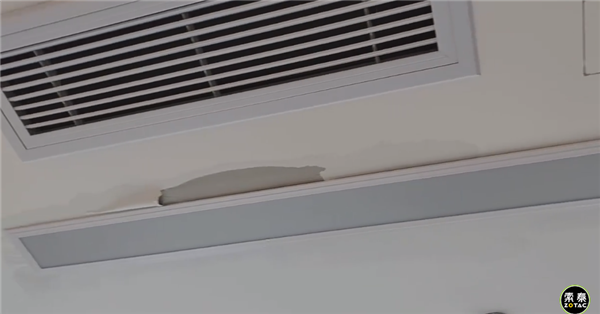 从索泰发布的视频来看,漏水情况是比较严重,公司变成了水帘洞,天花吊顶大面积受损。