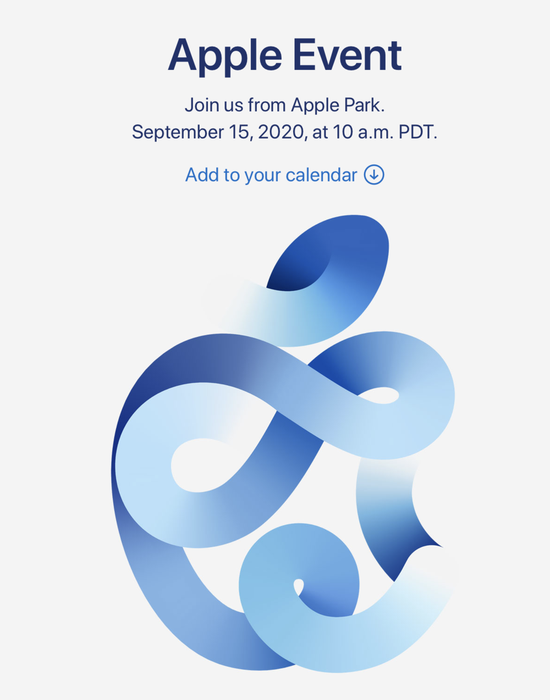 另一方面,今年的邀请函,苹果还做了个彩蛋,点击蓝白相间的苹果 logo,就能激活一个 AR 体验,邀请函上的条纹会动起来,最后变成 9 月 15 日,这个发布会召开的美国日期。