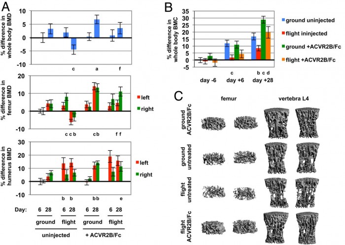 研究人员最新发表在《Proceedings of the National Academy of Sciences》上的报告指出,曾在发射前接受肌肉治疗的老鼠其在返回之后不仅跟离开时一样健壮,而且在太空中接受治疗的老鼠返回时肌肉比离开时更大。研究人员称,未经治疗的老鼠失去了高达18%的肌肉和骨量。