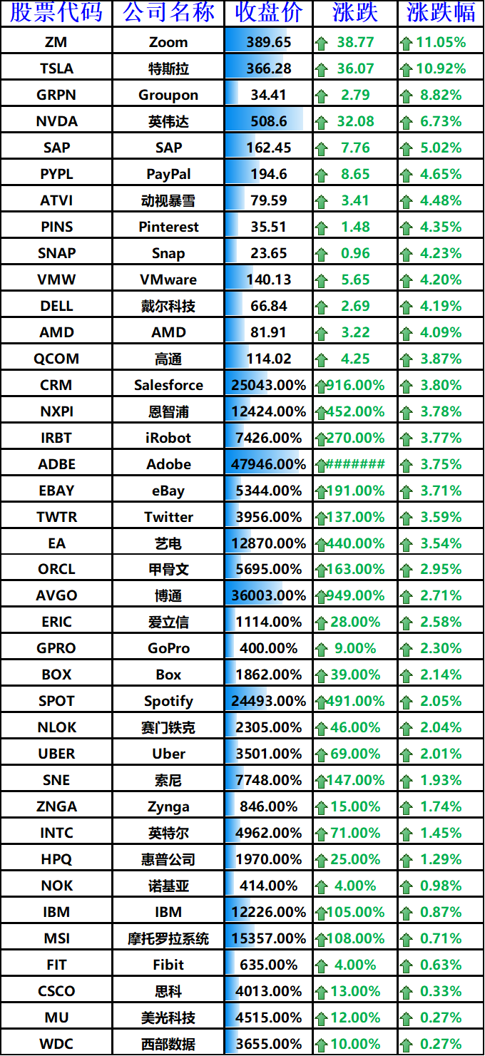 其他国外科技股大多数上涨,其中上涨的公司包括: