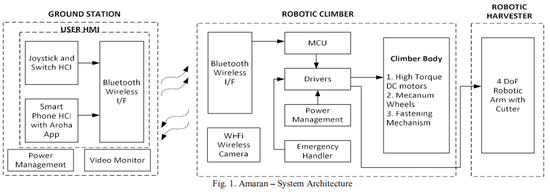 当 Amaran 在椰子树顶部时,地面操作员使用一个智能手机 App Aroha 来驱动攀爬器和机械臂,该 App 的原理示意图如下: